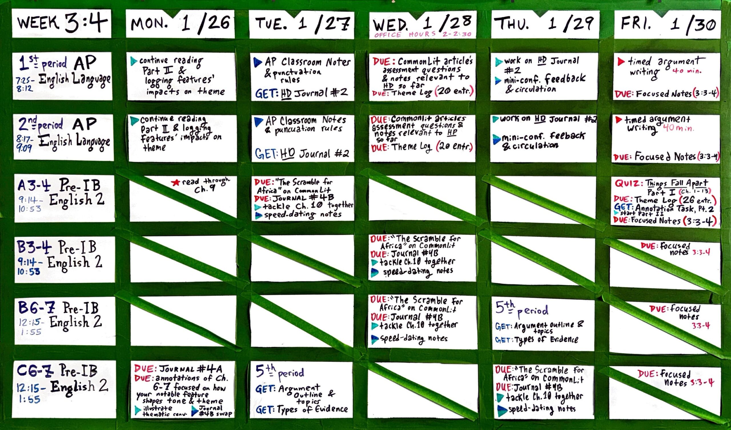 IB Freshmen: the RCP, the Sub-Con Kit, Analytical Verbs, Wheel of Feels, Claim Frames & Analytical Verbs, Analyzing Diction & Syntax, TFA E-text, Blank Outline, Outline Checklist, MLA Template, Literary Analysis Thesis Frame, Essay Rubric; Macbeth: Sonnet Breakdown, Theme Log, Interactive E-text (CLASS CODE: G9CDBT), Plain E-text, Vocab Practice, Audioplay, Pre-Notes, “Reading Shakespeare”, Journal #5A, Performance Jobs & Schedule (A3–4, B3–4, B6–7, C6–7, Master/Blank)