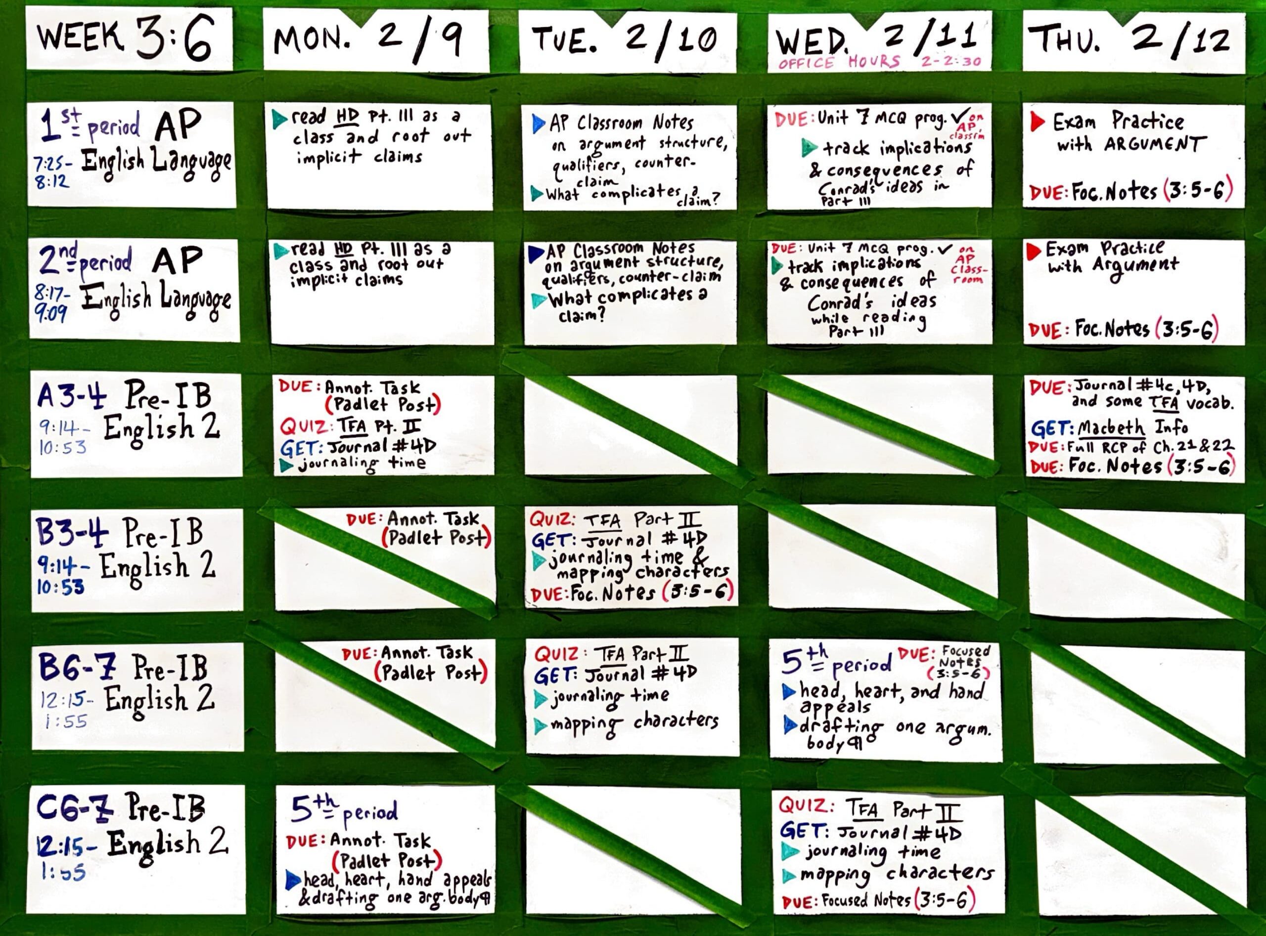 IB Freshmen: PM2 Data Reflection Form, Reading Comprehension Protocol, Sub Con Kit, Analytical Verbs, Weaving & Citing, Wheel of Feels (Tone), Claim Frames & Analytical Verbs; Argument: Outline, Types of Evidence, Appealing to Your Audience; Things Fall Apart: E-text, Theme Log, Background & Informal Research Task, Audiotext, Pre-Notes, Journal #4B, Journal #4C, #4D, Annotation Task (Directions), Annotation Task (Padlet)