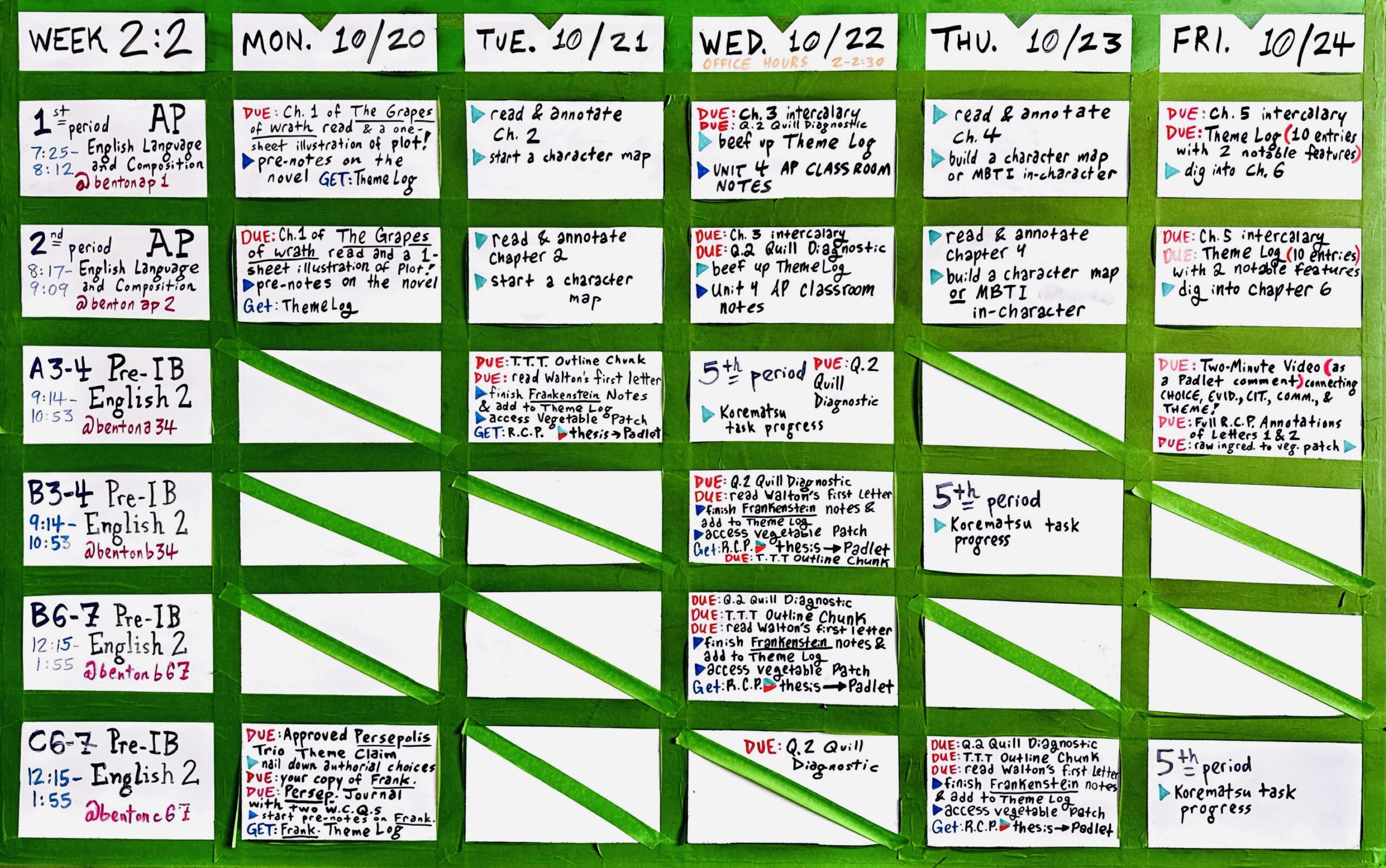 AP Language: Sub Con Kit, MLA Template, Thesis Frames, Verbs for Analysis, Wheel of Feels, Blank Outline, Audience Breakdown / Complex Sentences: Grammar Monster, Grammar Bytes, Grammarly / Rhetorical Analysis: Rubric, SPACE-CAT, Rhetorical Terms, Body Guidelines / Argument: Types of Evidence, Transitions & Commentary / Synthesis: Rubric, Handwriting Sources / The Grapes of Wrath: E-text, Pre-Notes, Theme Log, Intercalary Chapter Presentations