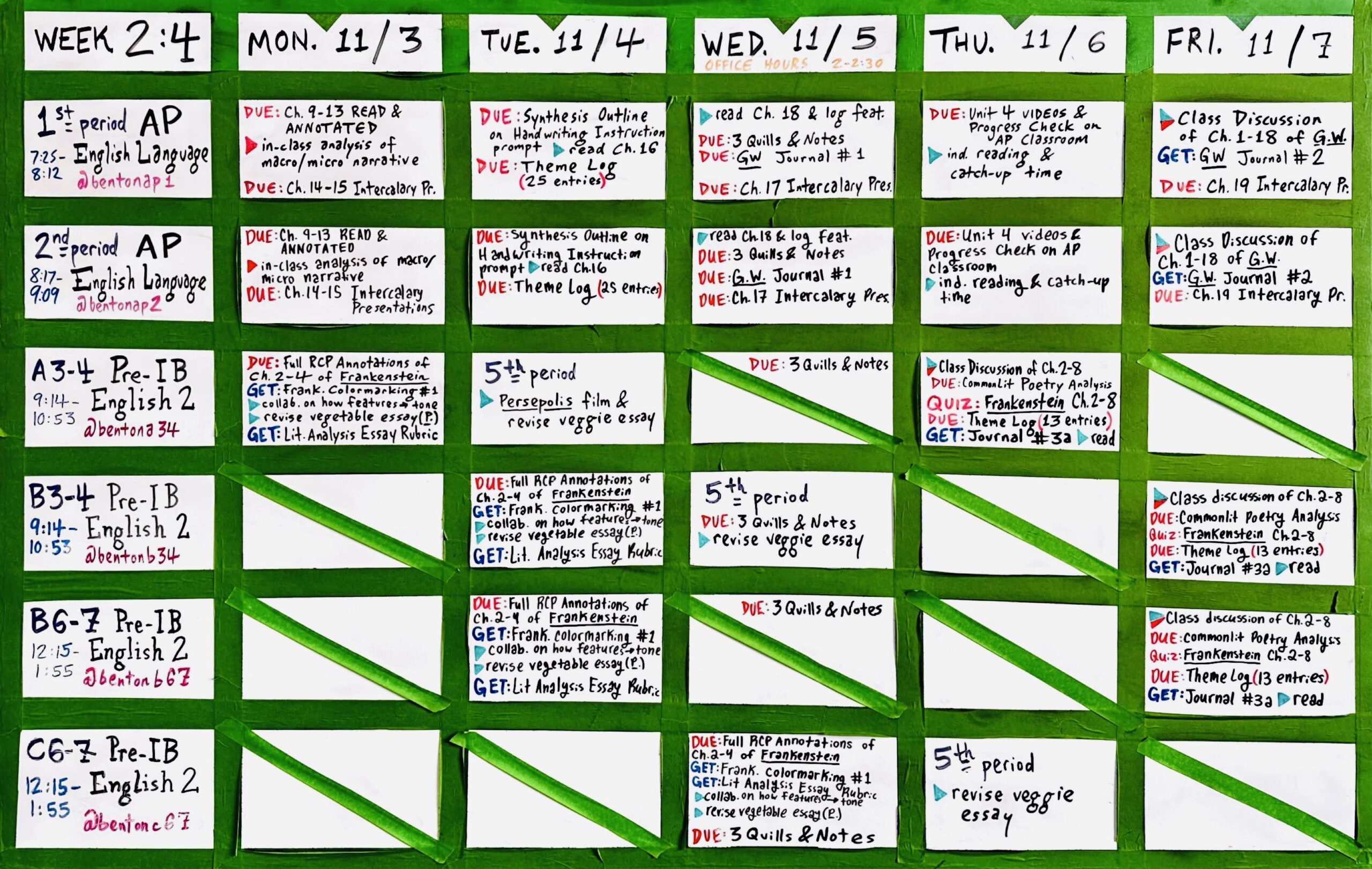 IB Freshmen: Sub Con Kit, MLA Template, Analytical Verbs, Weaving & Citing Guide, Wheel of Feels, Blank Outline, RCP Pop Quiz / Persepolis: the Padlet, the Vegetable Patch, Body Paragraph Req. / Frankenstein: E-text, Audiotext, Theme Log, Reading Comprehension Protocol
